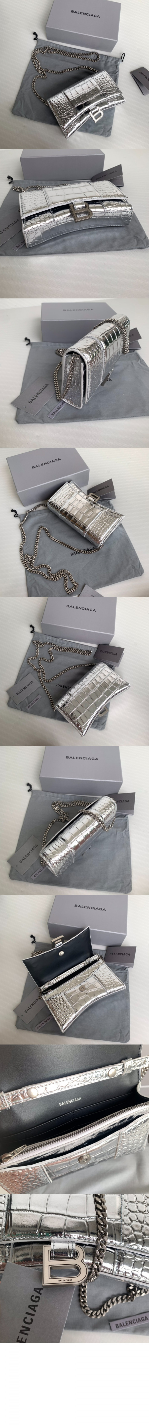 발렌시아가 아워글래스 월렛 온 체인 실버 656050