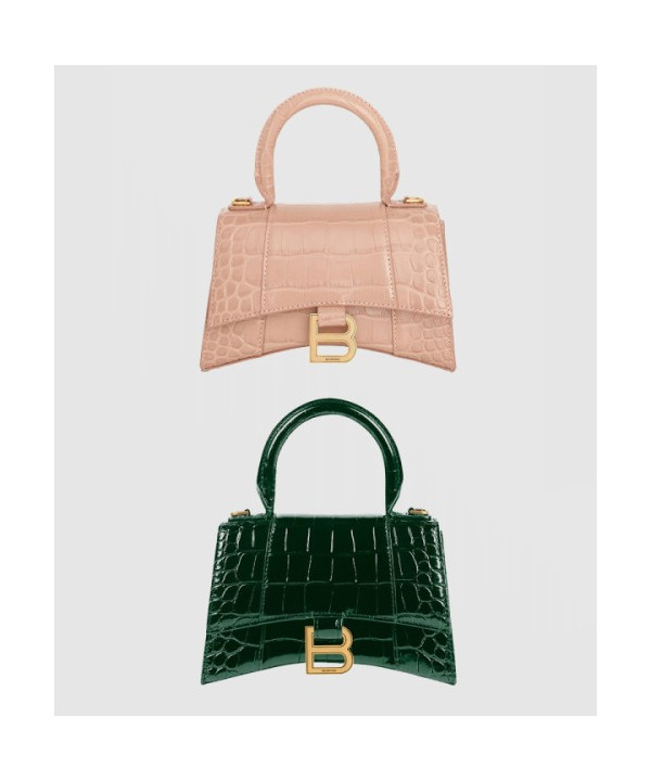 • 발렌시아가 아워글래스 XS 크로커다일 엠보싱 핸드백 592833
