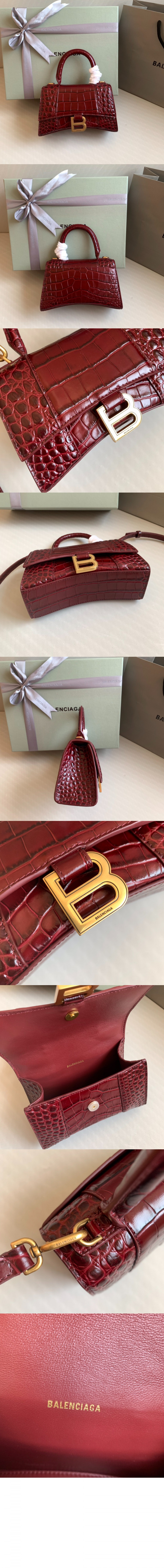발렌시아가 아워글래스 XS 크로커다일 엠보싱 핸드백 592833