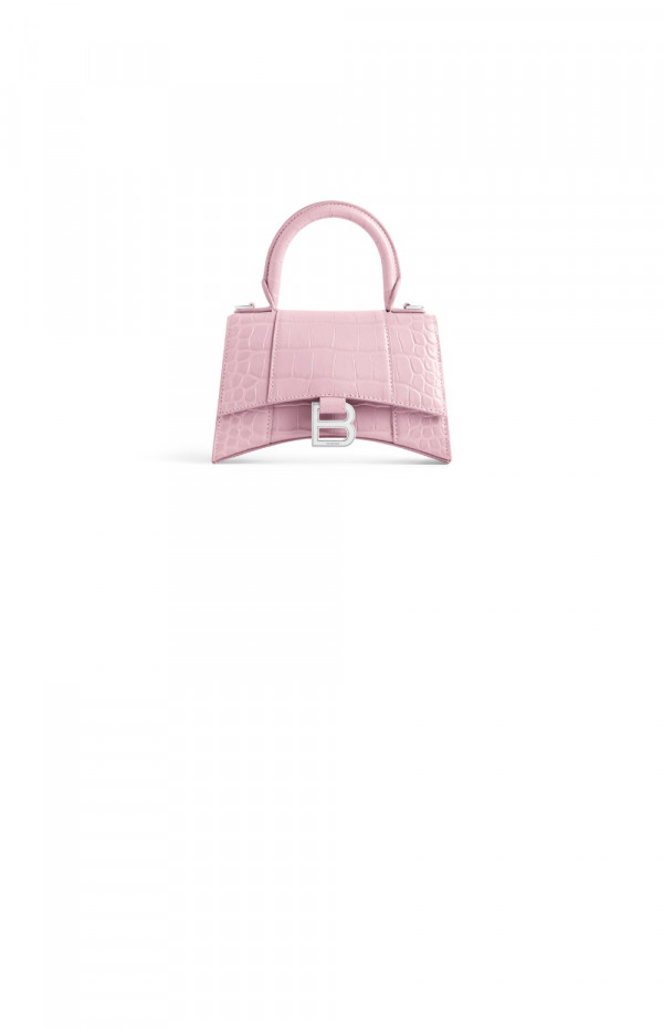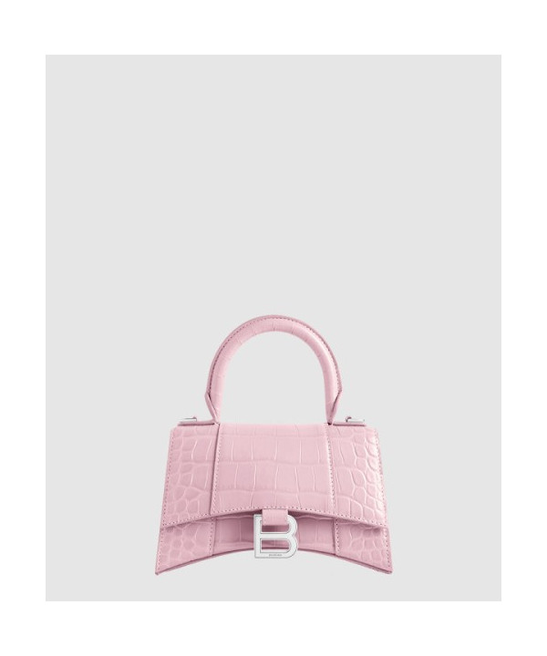 발렌시아가 아워글래스 XS 크로커다일 엠보싱 핸드백 핑크 592833