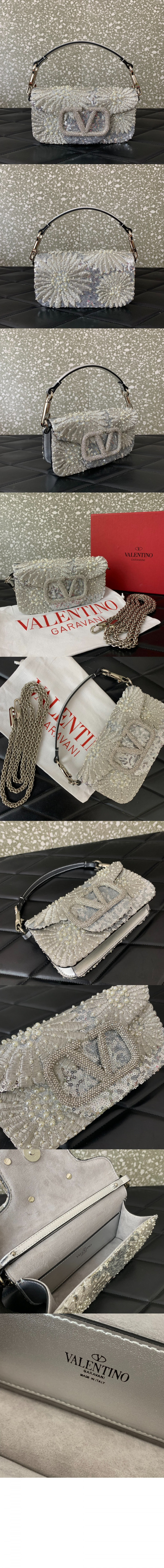 발렌티노 LOCÒ 스몰 플로럴 프린트 자수 핸드백