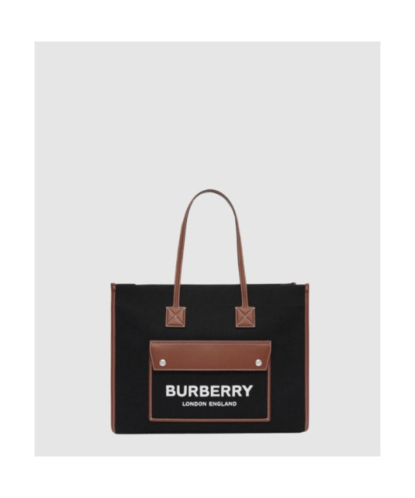버버리 캔버스 레더프레야 토트백 80557471