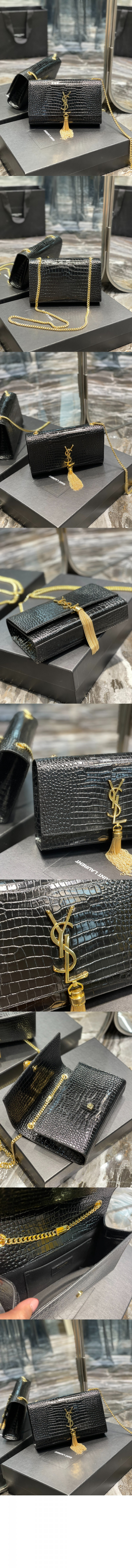 생로랑 크로커 케이트백 테슬 미듐 354119