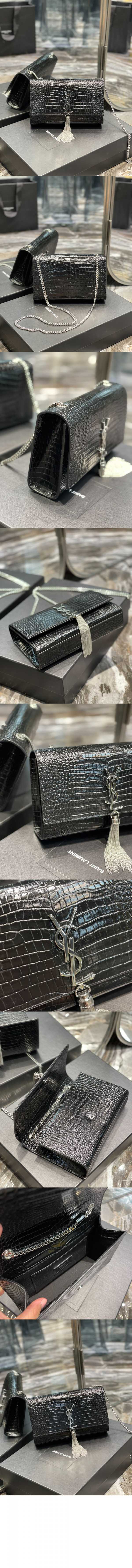 생로랑 크로커 케이트백 테슬 미듐 354119