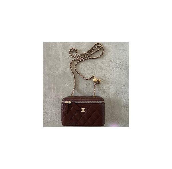 샤넬 램스킨 버건디 금장 메이크업 백