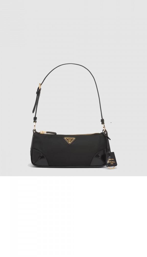 프라다 리에디션 2002 리나일론 및 브러쉬드 가죽 숄더백 1BC201