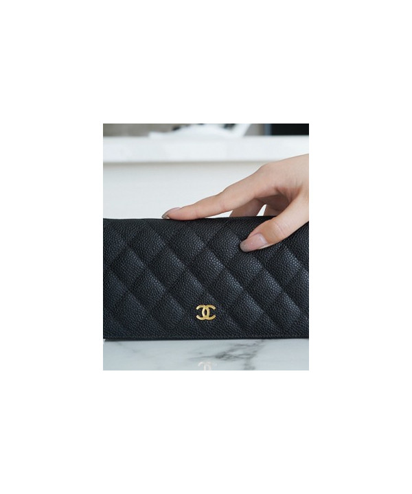 샤넬 클래식 롱 플랩 지갑 캐비어 금장 A31509