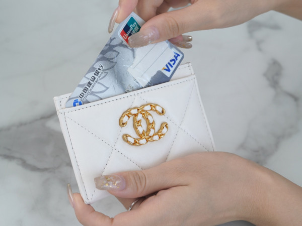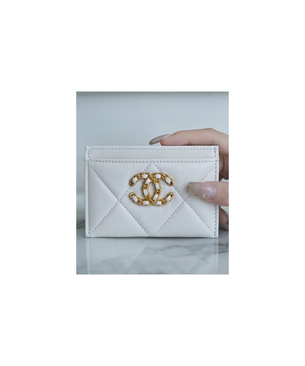 • 샤넬 카드 지갑 램스킨 금장 화이트 AP1167