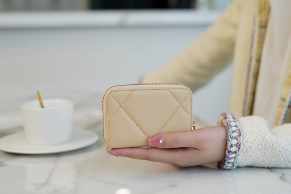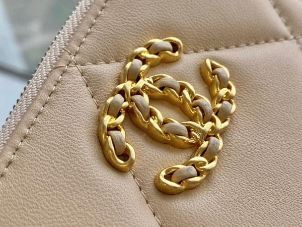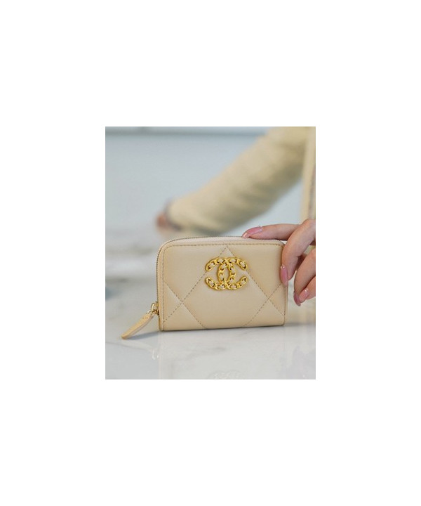 • 샤넬 19 지퍼 코인 지갑 램스킨 금장 베이지 AP0949