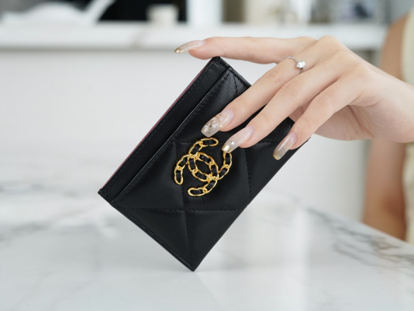 샤넬 카드 지갑 램스킨 금장 블랙 AP1167