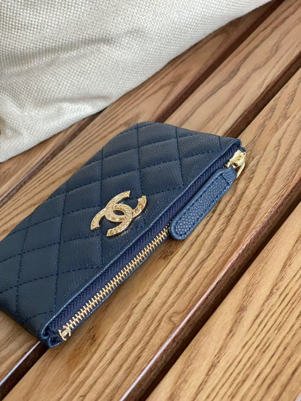 샤넬 클래식 미니 파우치 네이비 캐비어 금장 15 x 9.5CM