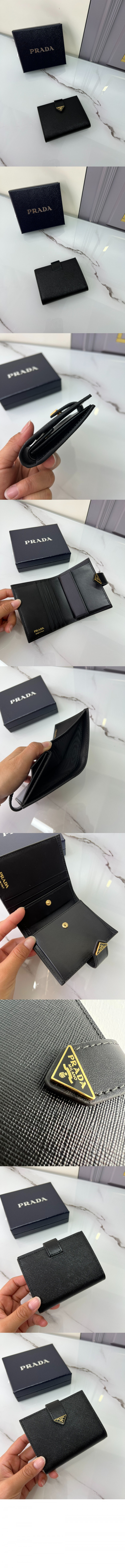 • 프라다 사피아노 및 가죽 반지갑 1MV204