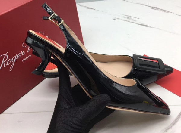 로저비비에 래커버클 페이턴트 레더 슬링백힐