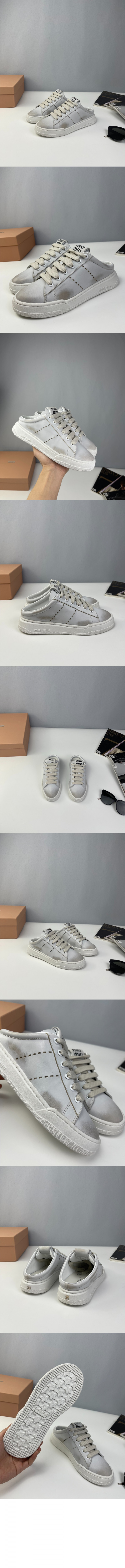 미우미우 블리치드 가죽 스니커즈 5E915D