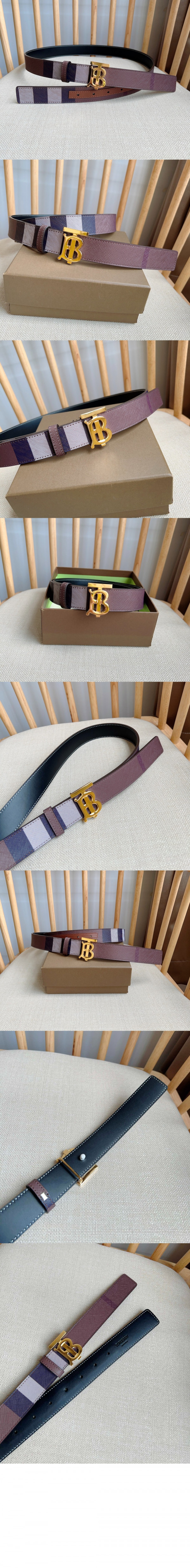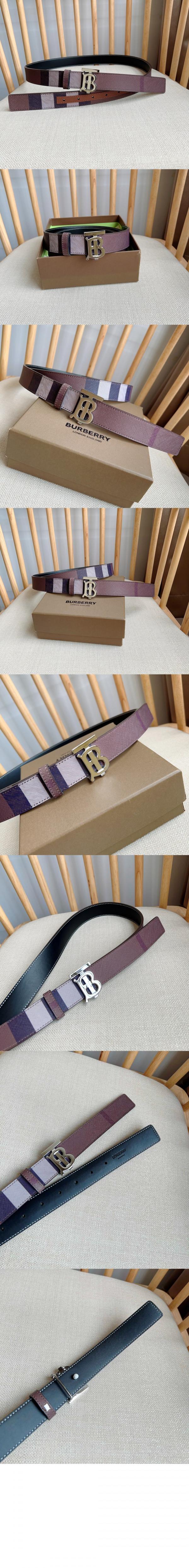버버리 체크 레더 리버시블 TB 벨트 80623491
