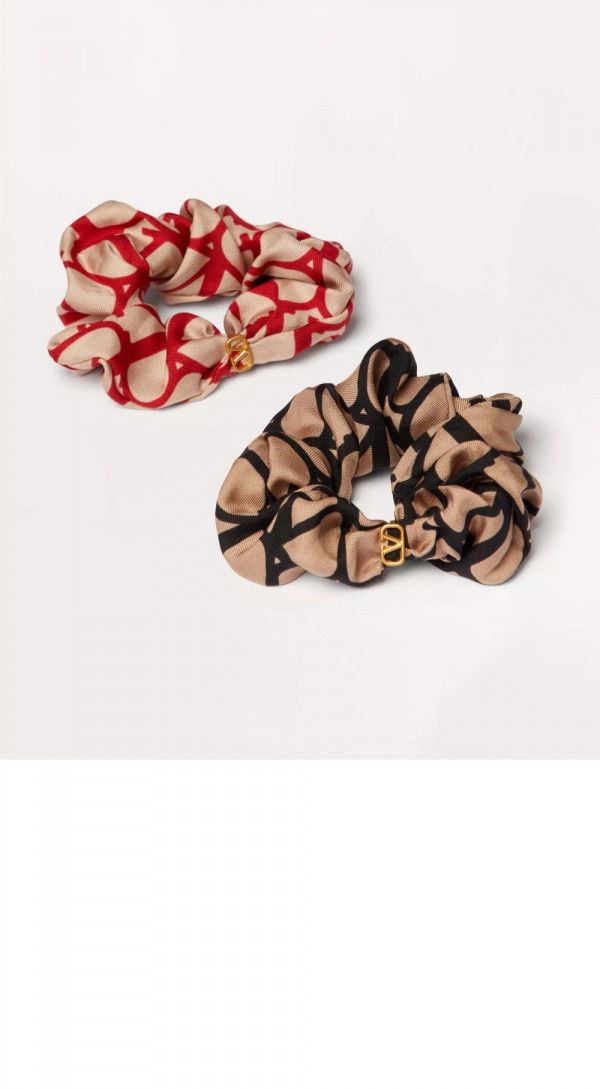 발렌티노 트왈 이코노그라프 브이로고 아플리케 장식 실크 스크런치 세트
