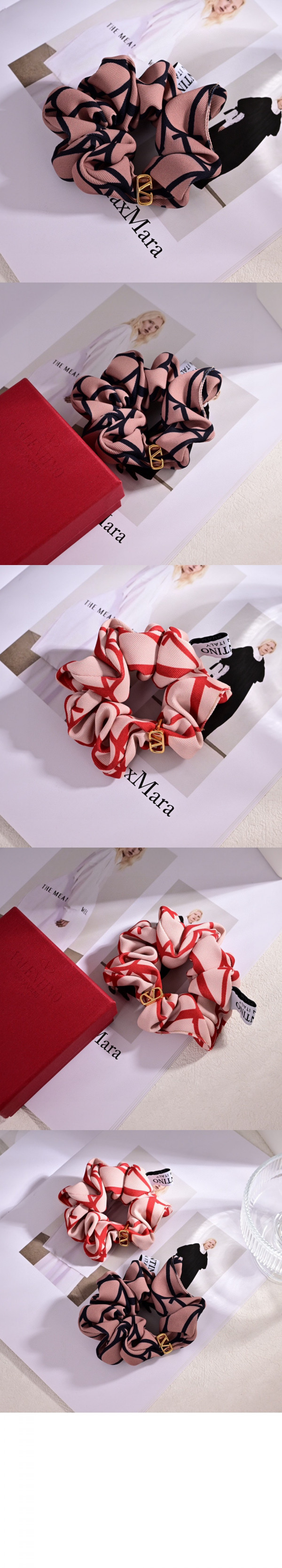 • 발렌티노 트왈 이코노그라프 브이로고 아플리케 장식 실크 스크런치 세트
