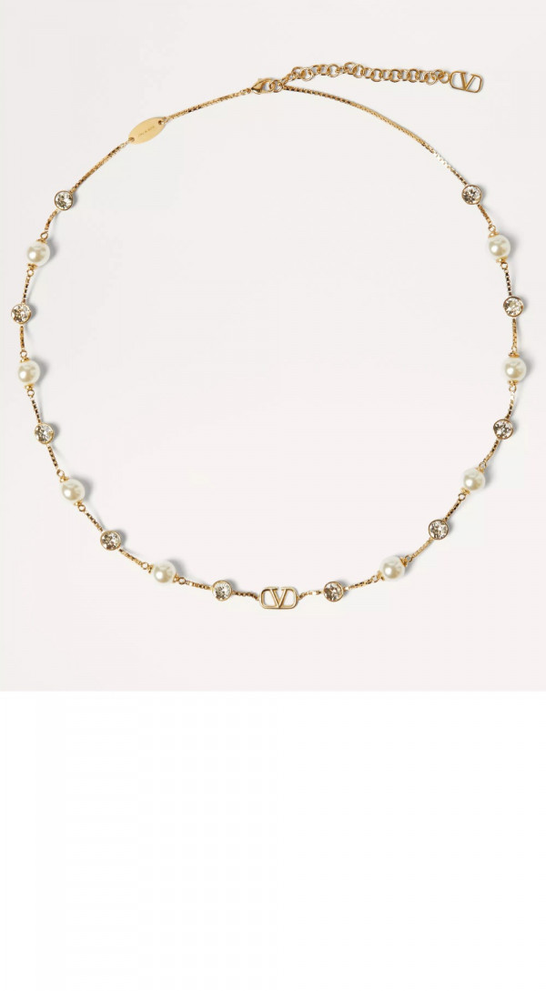 발렌티노 크리스털 장식 브이로고 시그니처 메탈 네크리스