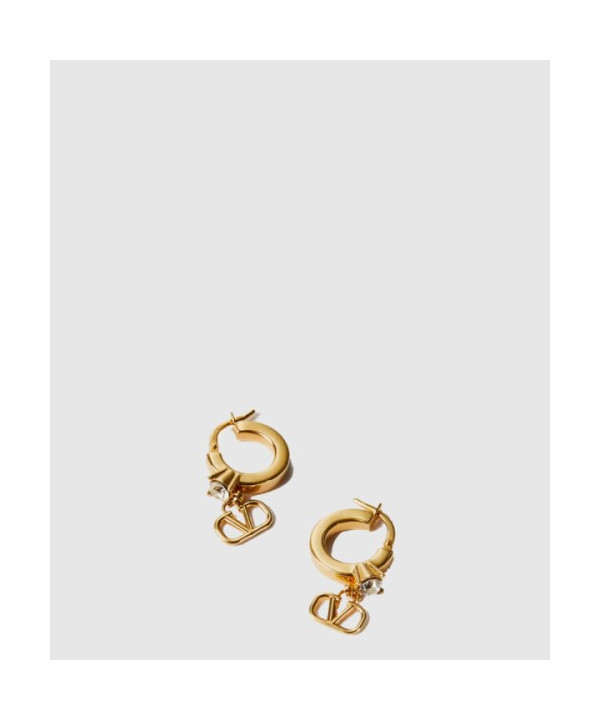 발렌티노 크리스털 장식 미니 브이로고 시그니처 메탈 이어링