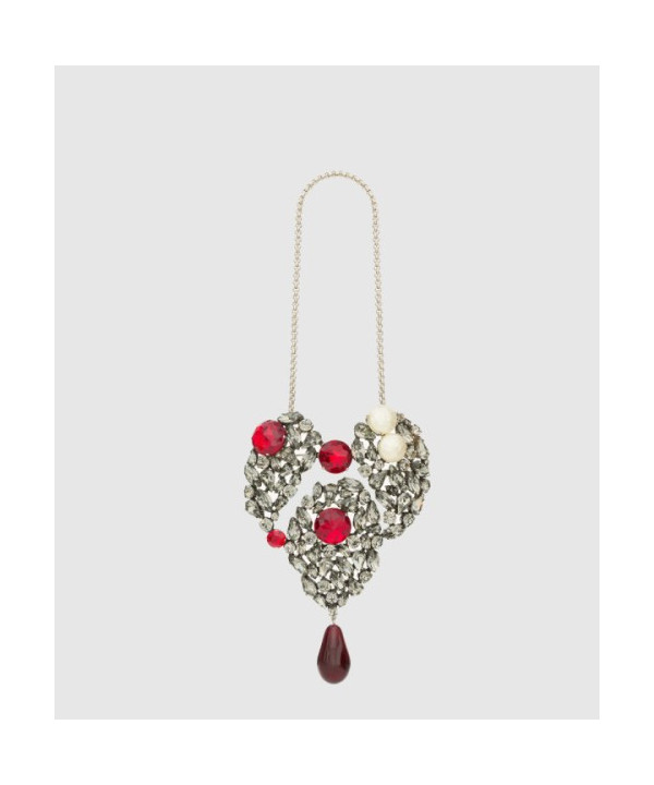 생로랑 메탈 소재의 크리스탈 하트 네크리 806498