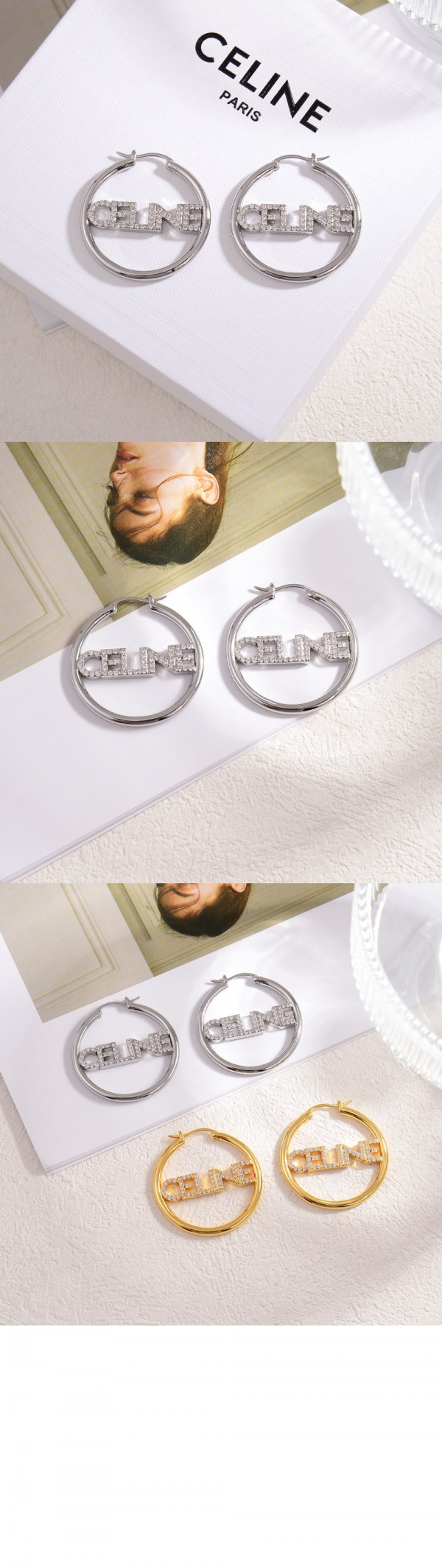 • 셀린느 모노크롬 스트라스 귀걸이 460YU6