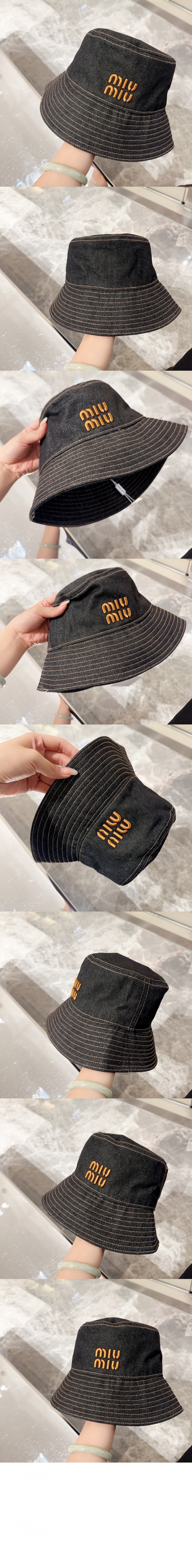 미우미우 데님 자수 버킷햇 5HC155