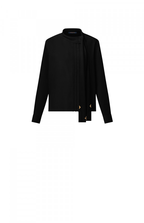 루이비통 플리츠 디테일 펜던트 칼라 셔츠