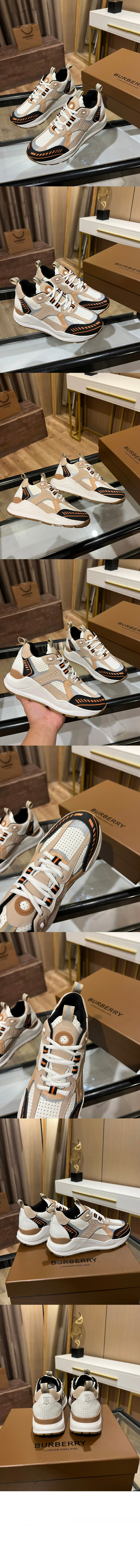 • 버버리 로고 엠보싱 레더 나일론 스니커즈 80657371
