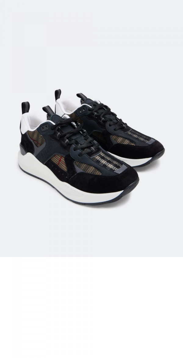 • 버버리 레더 스웨이드 체크 스니커즈 80668351