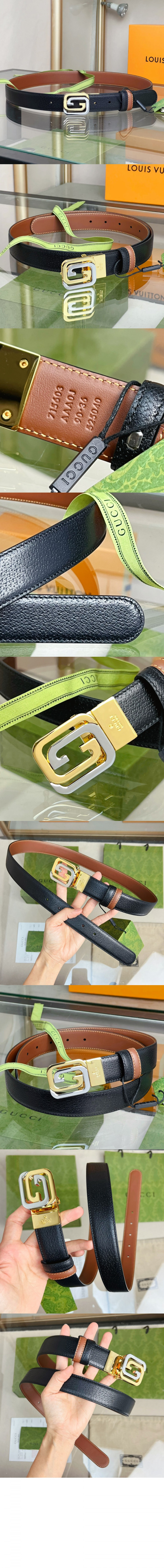 구찌 스퀘어드 인터로킹 G 리버서블 벨트 715603