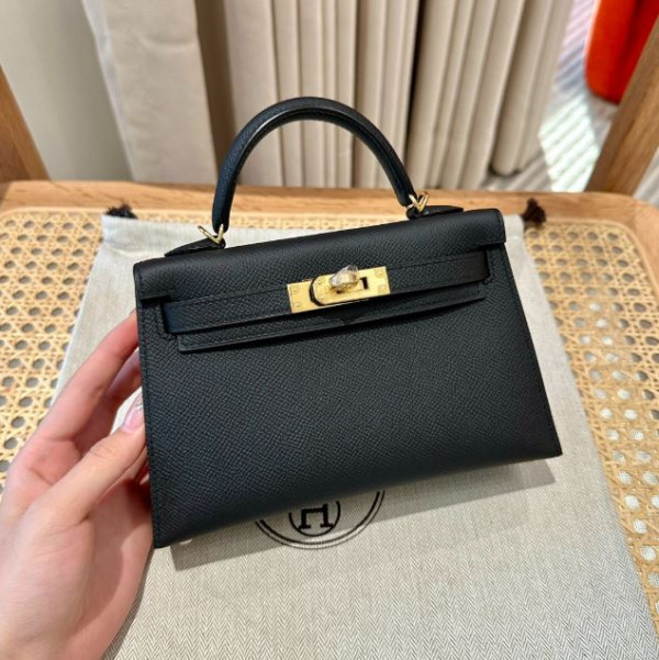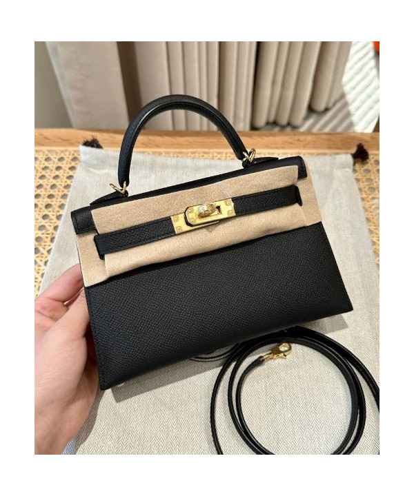 에르메스 미니 켈리2 블랙 앱송 금장 19cm