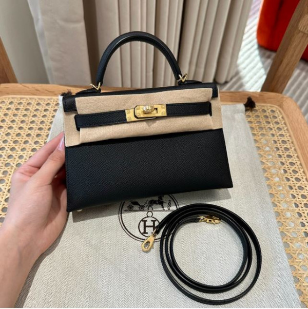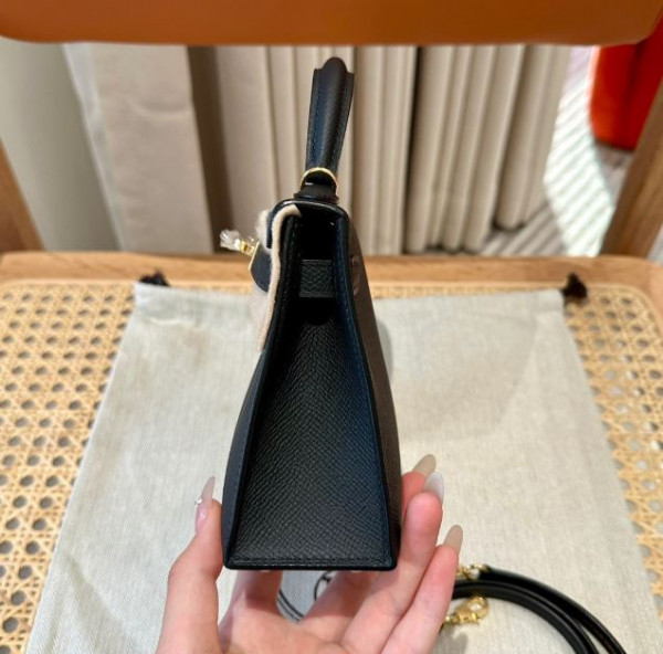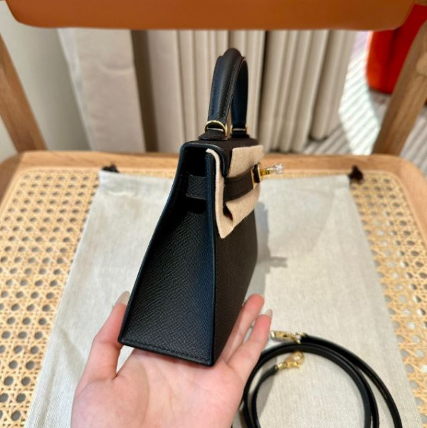 • 에르메스 미니 켈리2 블랙 앱송 금장 19cm