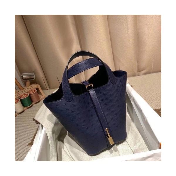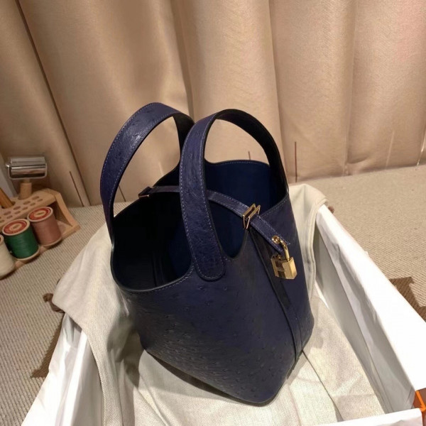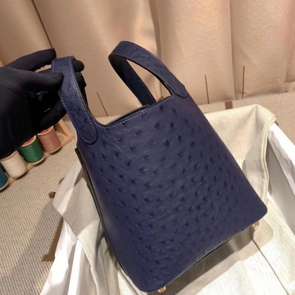 에르메스 피코탄 락18 사파이어블루 금장 타조가죽
