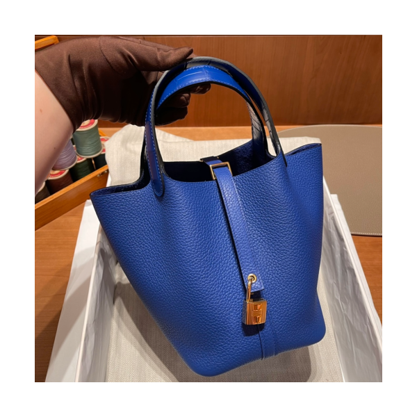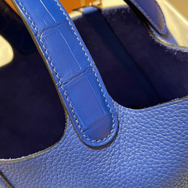 에르메스 피코탄 락18 블루 금장 끌레망스 악어가죽 핸들