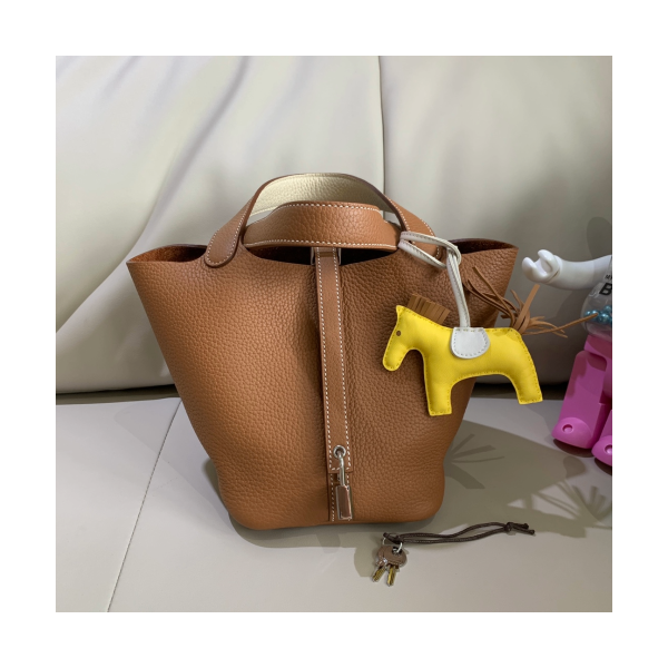 에르메스 피코탄 락18 골드브라운 화이트 은장 끌레망스 가죽