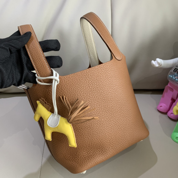 • 에르메스 피코탄 락18 골드브라운 화이트 은장 끌레망스 가죽