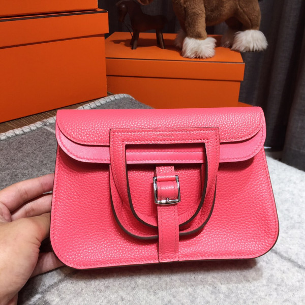 에르메스 미니 할잔백22 립스틱 핑크 은장 끌레망스 가죽