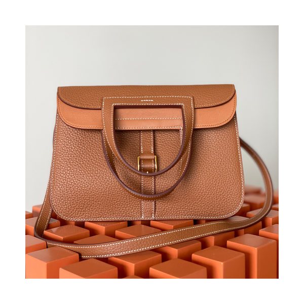 에르메스 투톤 할잔백25 브라운 금장 버클