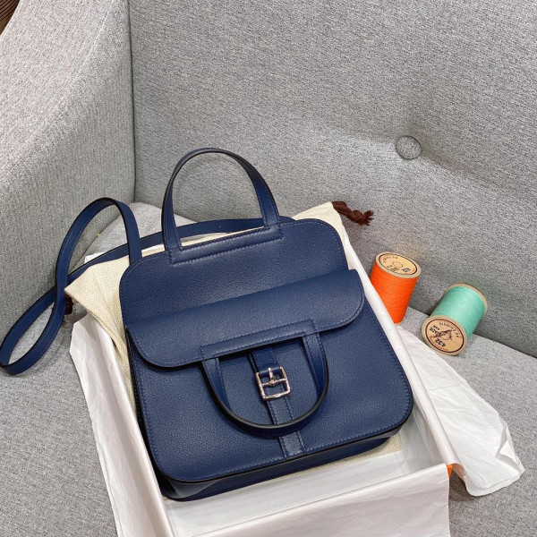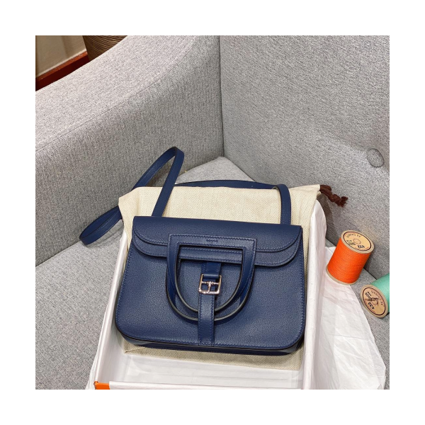 에르메스 미니 할잔백 사파이어블루 은장 스위프트