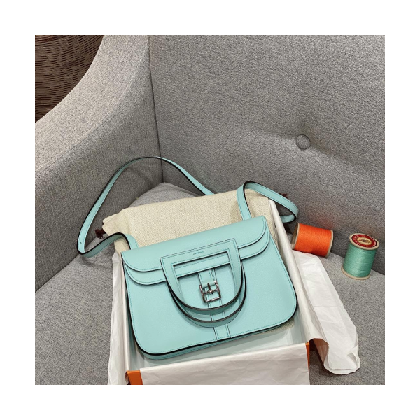 에르메스 미니 할잔백 아토 블루 은장 스위프트