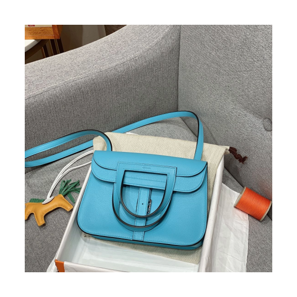 에르메스 미니 할잔백 블루드노드 은장 스위프트