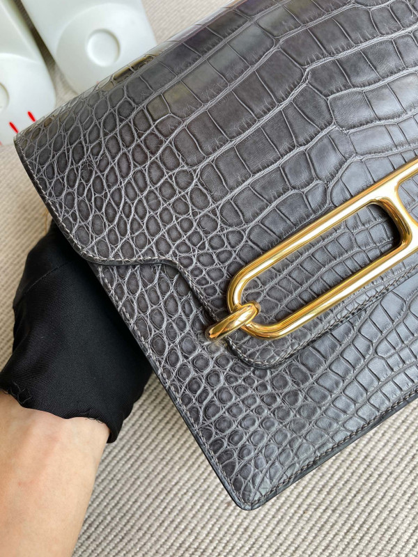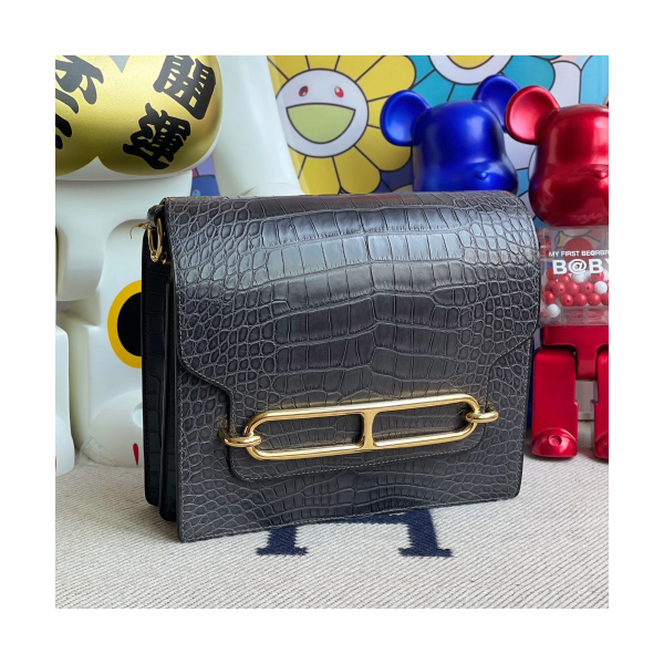 에르메스 룰리스23 블랙 그레이 금장 악어가죽