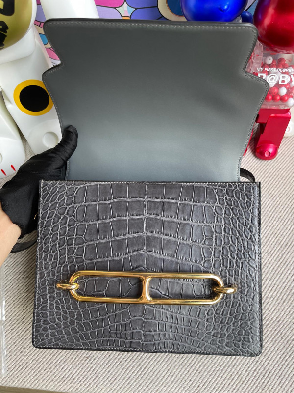 • 에르메스 룰리스23 블랙 그레이 금장 악어가죽