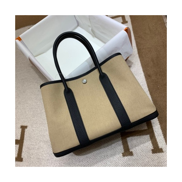 에르메스 가든파티30 트렌치 캔버스 블랙 네곤다