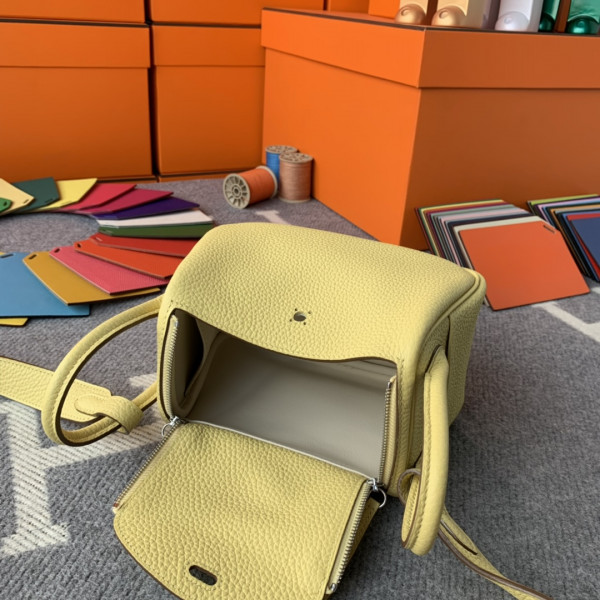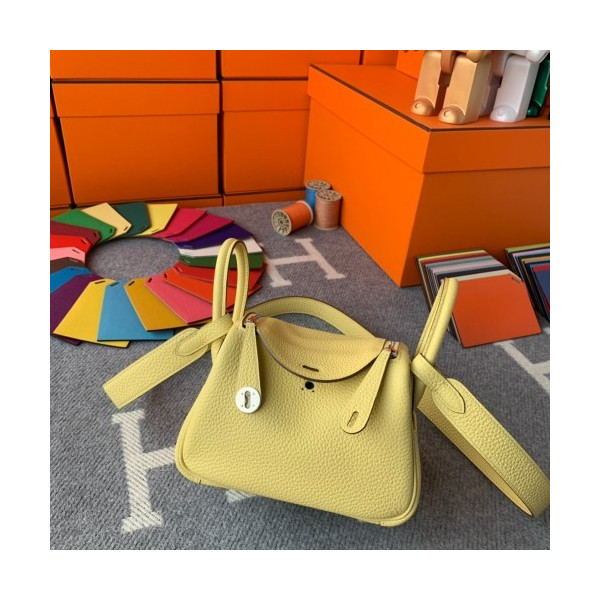 에르메스 미니 린디백 라임 화이트 은장 끌레망스 가죽