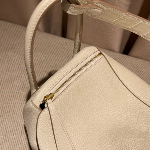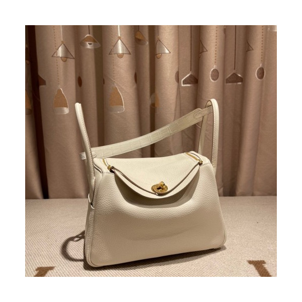 에르메스 린디백26 나타 화이트 금장 끌레망스 가죽 악어가죽 핸들