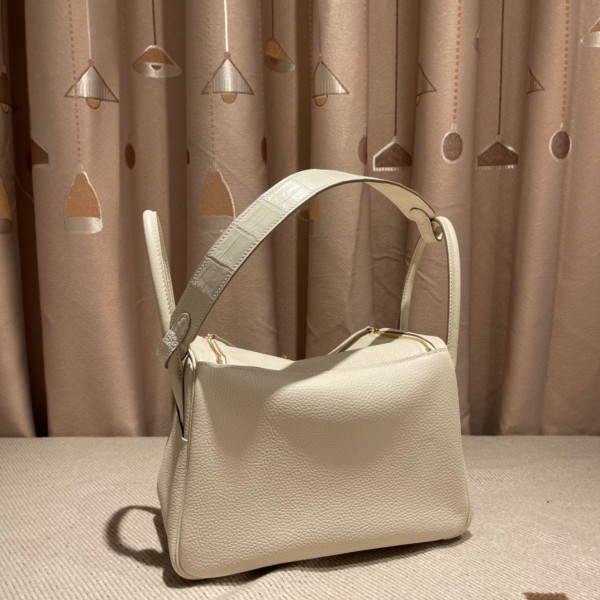 • 에르메스 린디백26 나타 화이트 금장 끌레망스 가죽 악어가죽 핸들
