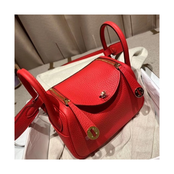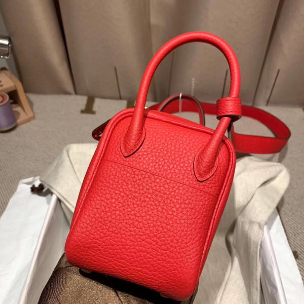 에르메스 미니 린디백19 레드 은장 끌레망스 가죽