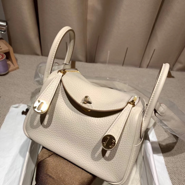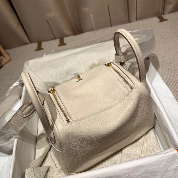 에르메스 미니 린디백19 펄그레이 금장 끌레망스 가죽
