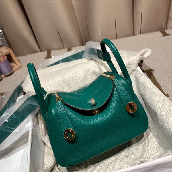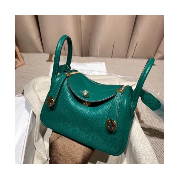 에르메스 미니 린디백19 벨벳그린 금장 끌레망스 가죽